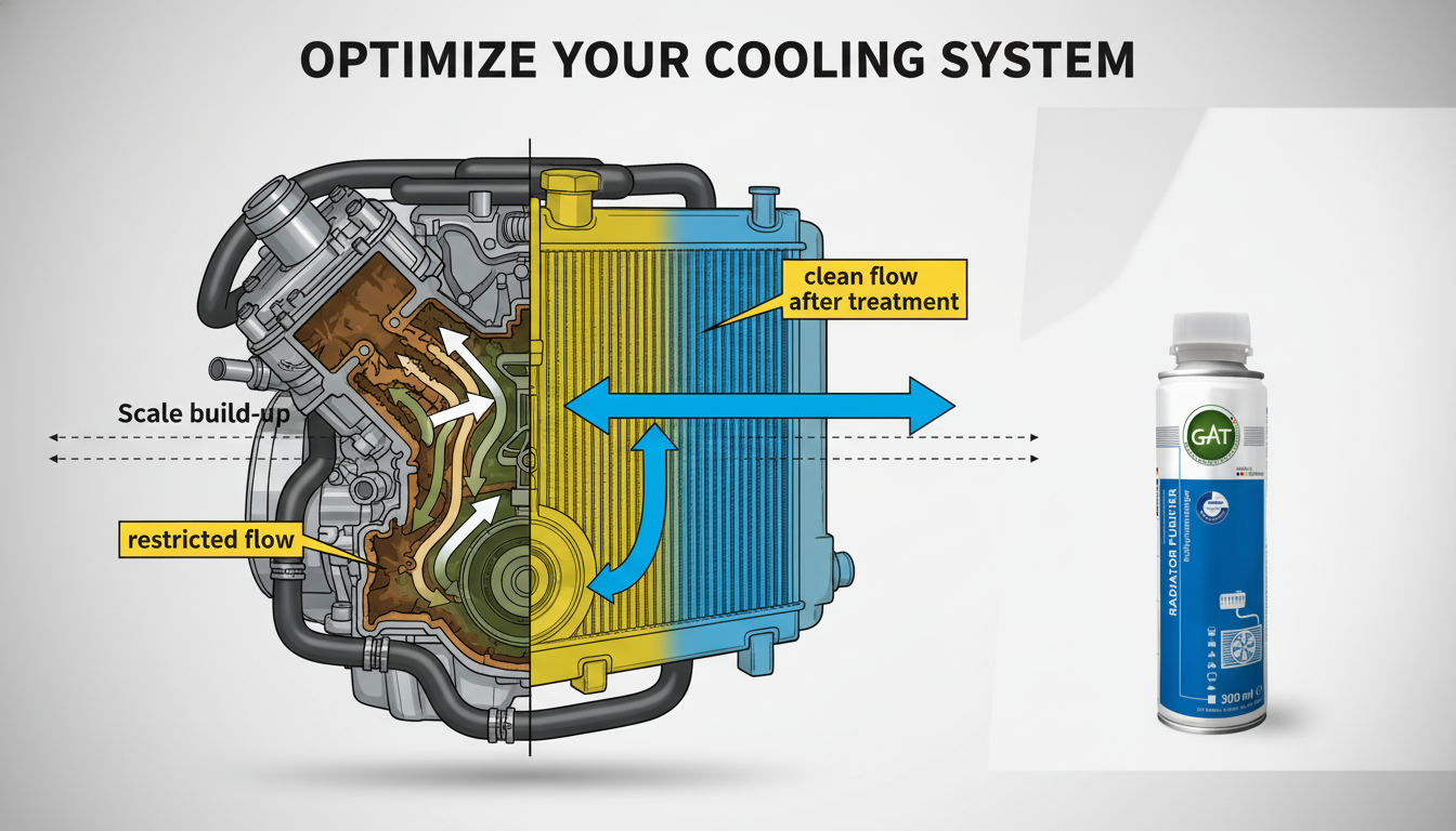 يعمل المنتج على تنظيف الصمامات، الثرموستات، ومضخة الماء، مما يعيد كفاءتها الكاملة. الفائدة: حماية المضخة والثرموستات من التآكل المبكر، وتحسين استجابة النظام للتغييرات في درجة الحرارة. هذا يؤدي إلى أداء المحرك المثالي، خاصة في الرحلات الطويلة أو الاستخدام اليومي الشاق، حيث يقلل من استهلاك الوقود بنسبة تصل إلى 5% بفضل التدفق الأفضل.